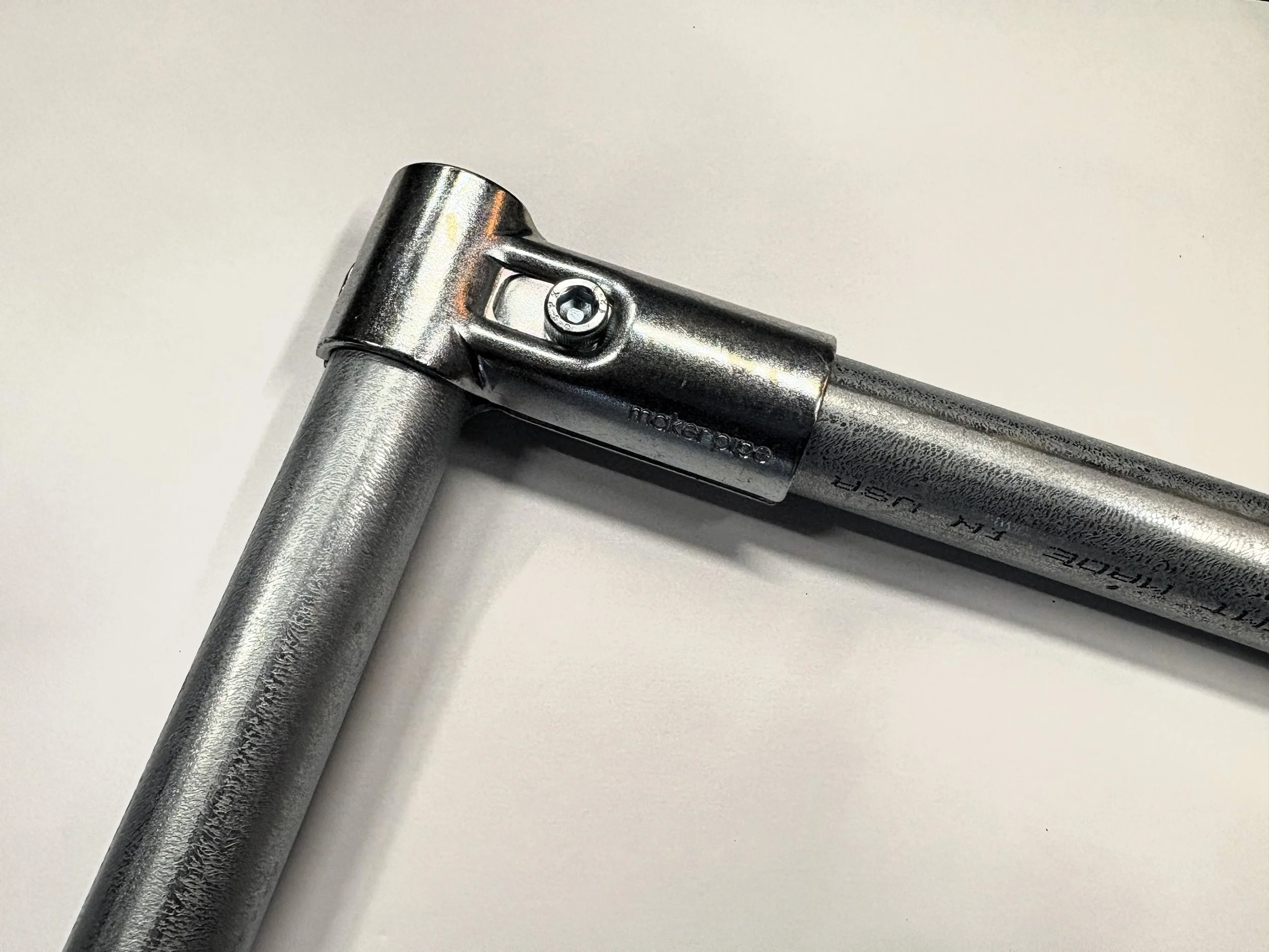 You can connect EMT simply with “Maker Pipe” fittings. Maker Pipe fittings clamp onto EMT with nuts and bolts, so you can tighten them with a handheld allen key / hex wrench—no welding or drilling needed.. You cut the EMT, slide the fittings on, tighten everything up, and you have a solid frame. If something’s a little off, you loosen a bolt and adjust it. No fabrication skills required, just basic measuring, cutting, and tightening.